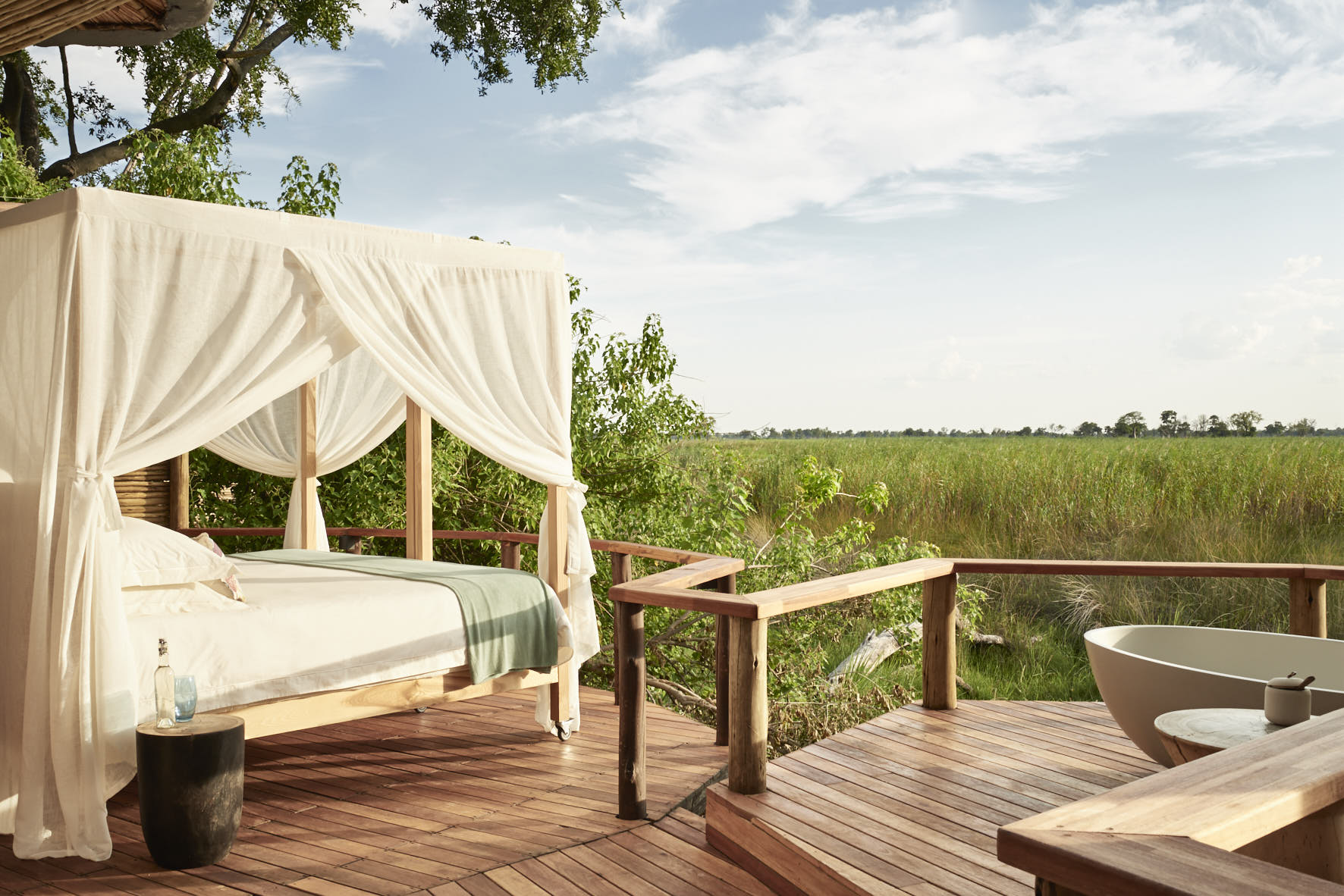 An intimate safari camp, Sanctuary Baines’ was named after the 19th century explorer and painter Thomas Baines. This is Sanctuary’s smallest camp with just five suites set on elevated platforms in the tree line with wooden decks that offer expansive views over the permanent water of the Boro River and a lagoon teeming with life.