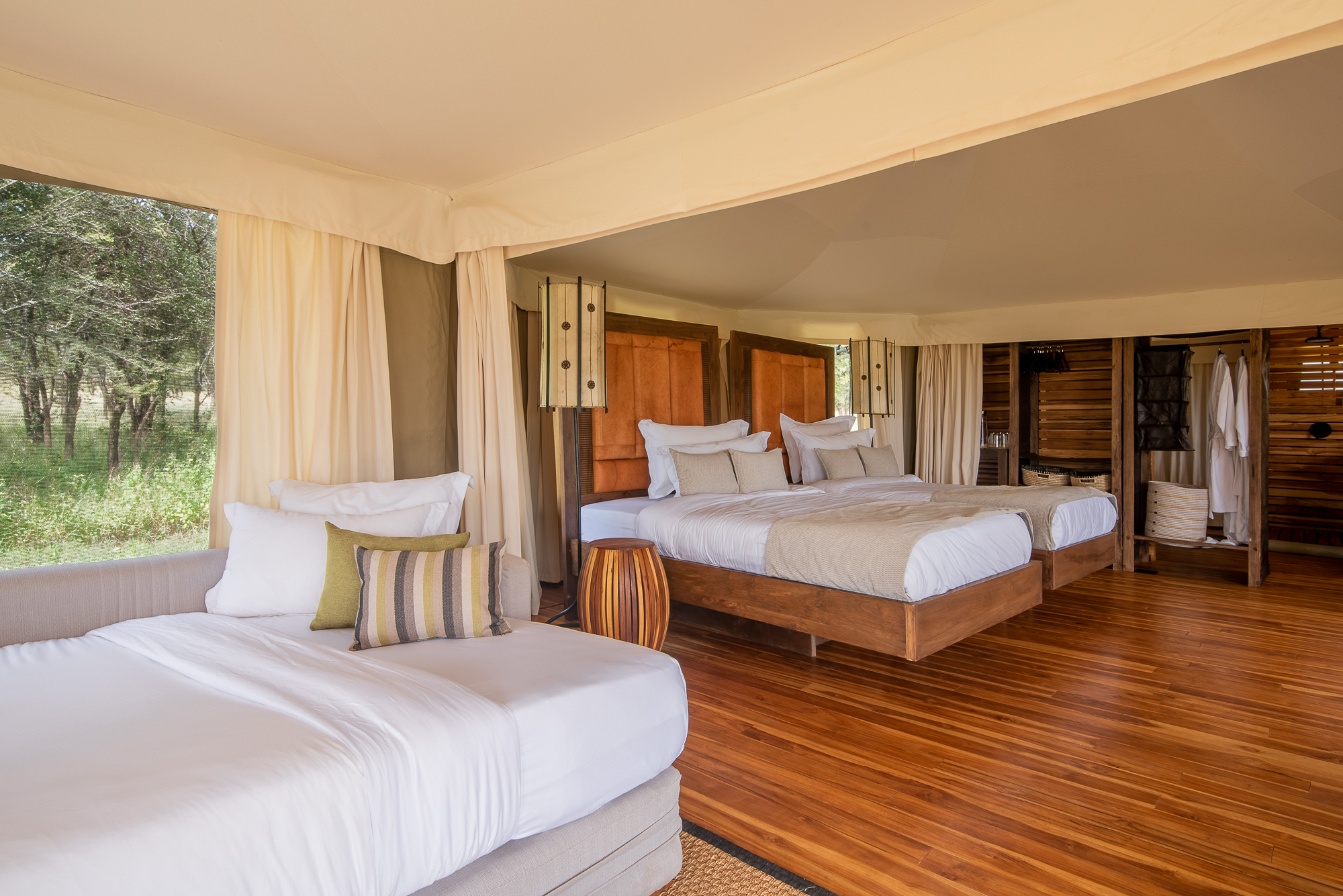 The unfenced camp offers luxury accommodation in only 6 luxury suites amidst the pristine landscapes within the migration corridor with no other camps in sight.