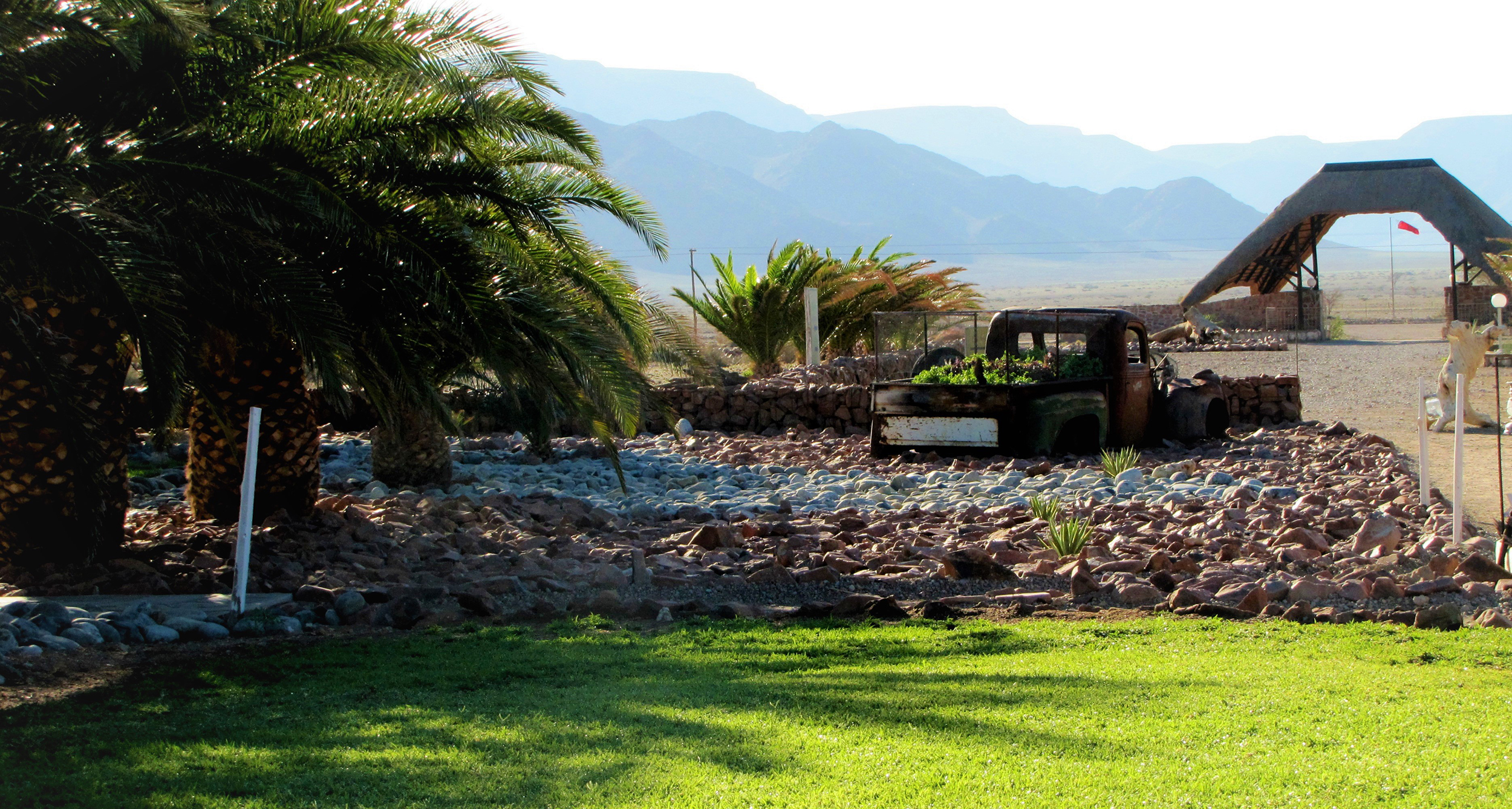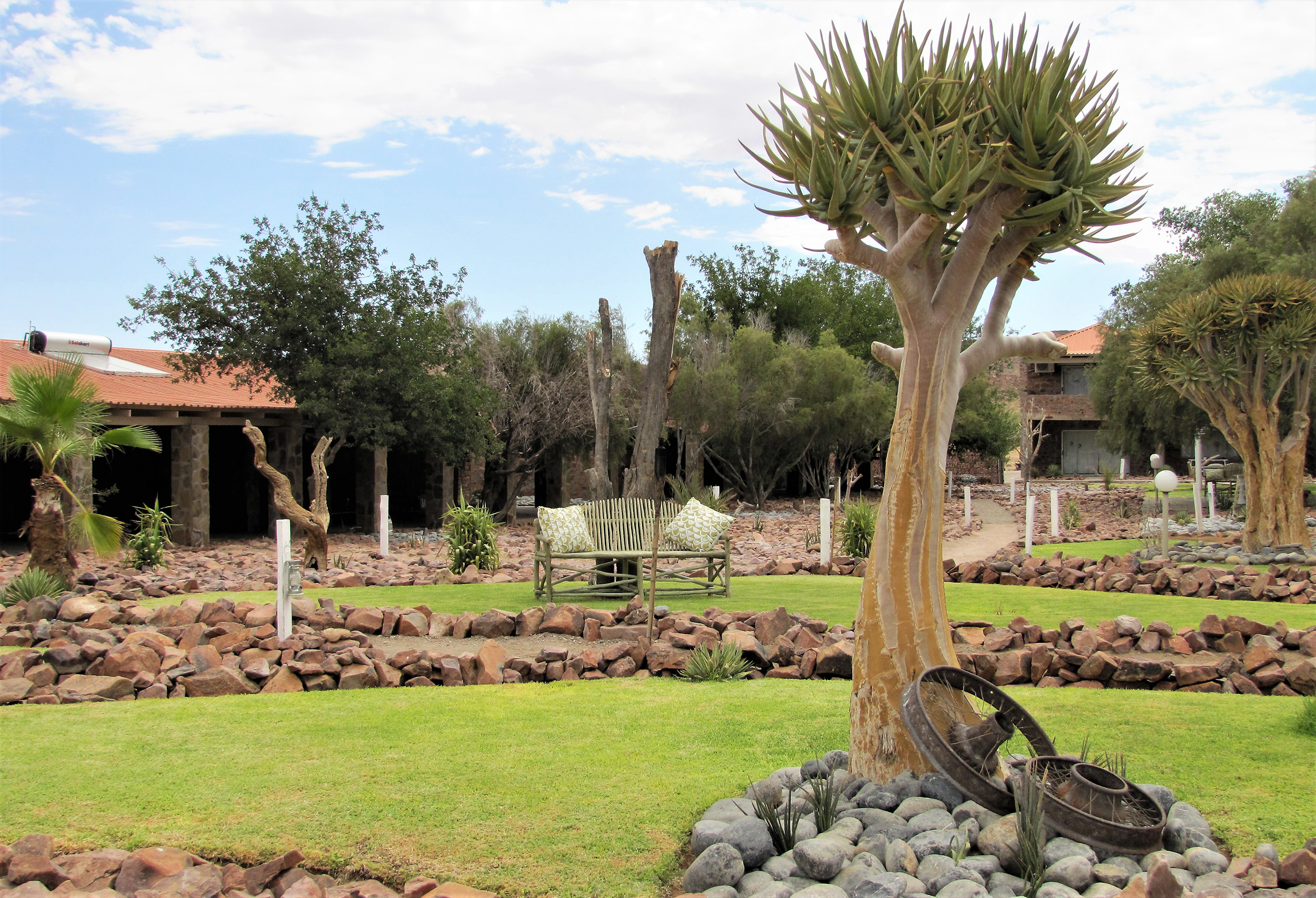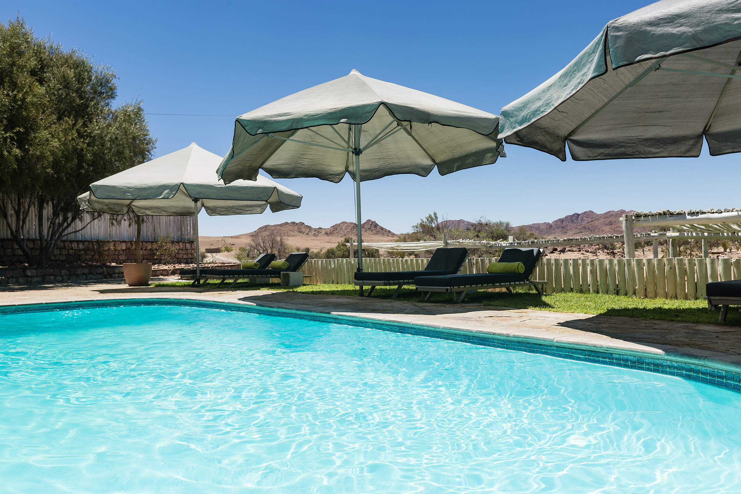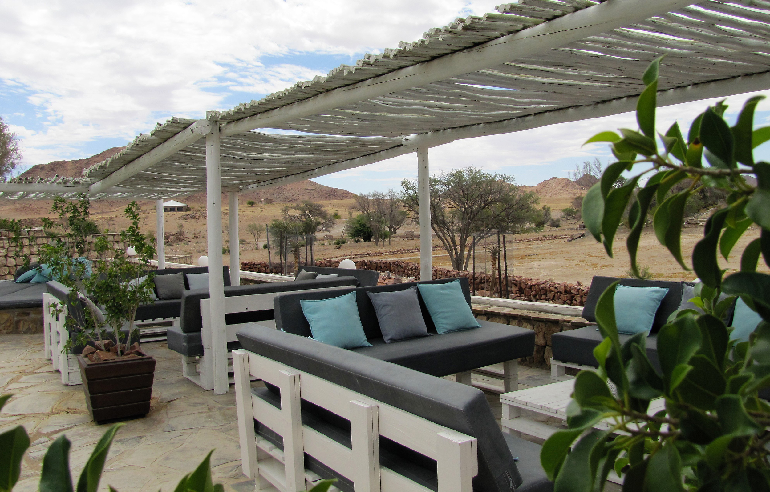 A beautiful and tranquil garden offering various, innovative seating arrangements inspire an image of an oasis nestled in the Namib Desert. Alternatively, enjoy the vistas of the desert plains from the veranda of your room. We suggest you treat yourself to a casual lunch with a bottle of fine South African Wine, each handpicked by the owners. In the afternoon you can relax in one of our chic lounges in the gardens or at the sparkling pool, or you can participate in the Scenic drive with spectacular views overlooking the Namib Desert.